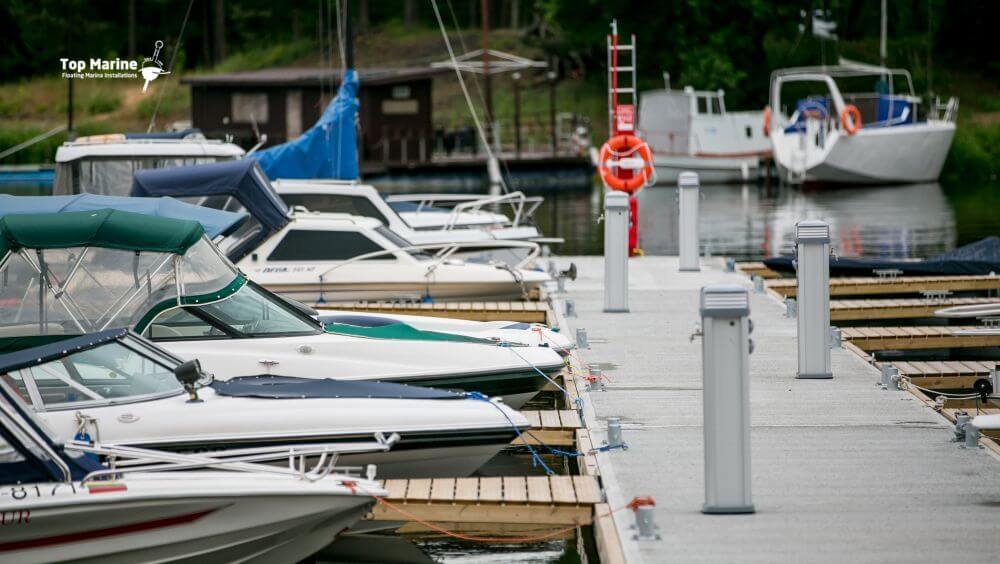 Bei Häfen mit Hafenkais auf Betonpontons oder Bootsstegen auf Kunststoffpontons können auch nachträglich noch Wartungssockel angebracht werden.